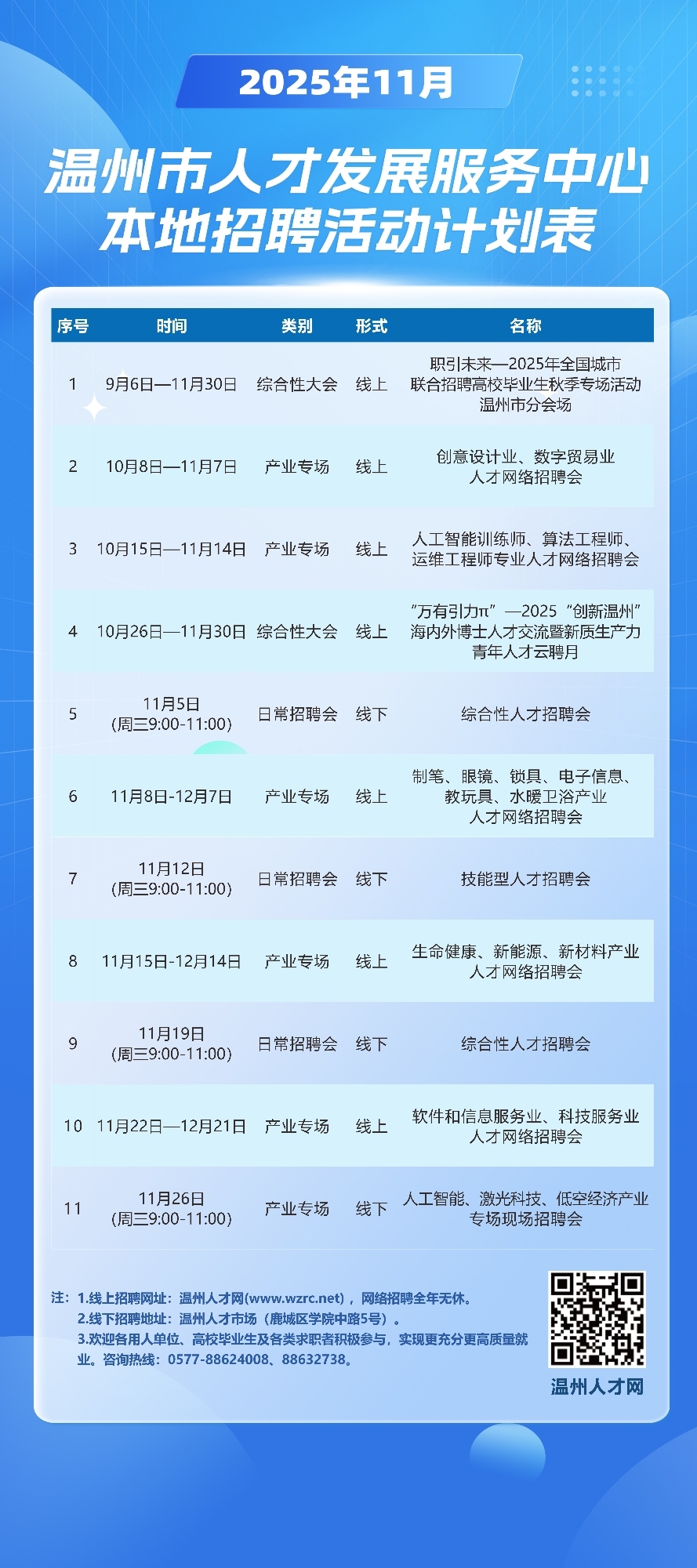 2025年11月温州市人才发展服务中心招聘活动计划表